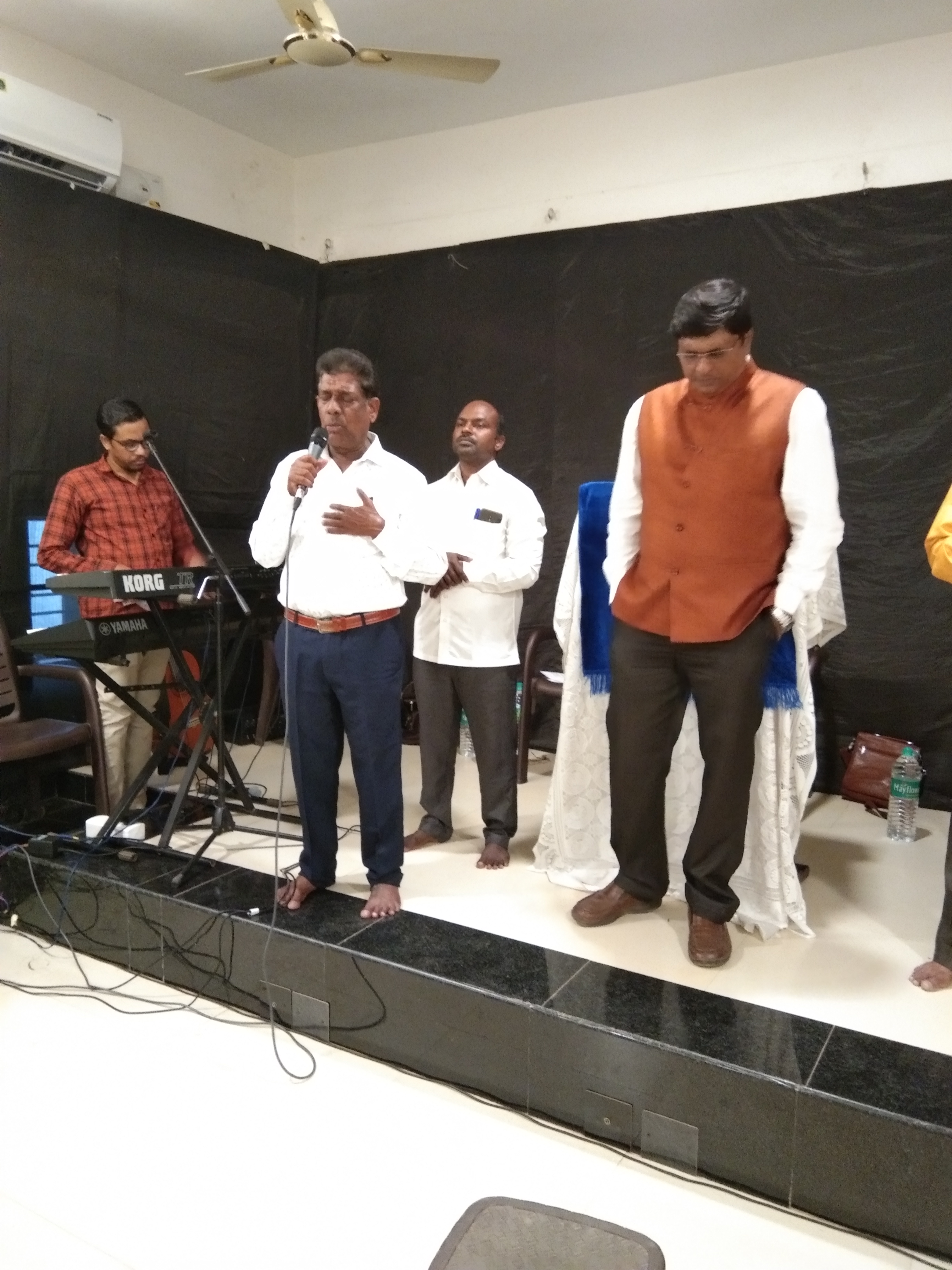 The sound system men had arrived by the time we got there. Bro. David had invited keyboardist Bro. Gowtham, guitarist Bro. Jebasteen David, and percussionist Bro. Johnson for accompaniment, and the message was to be videographed by Bro. Finny.